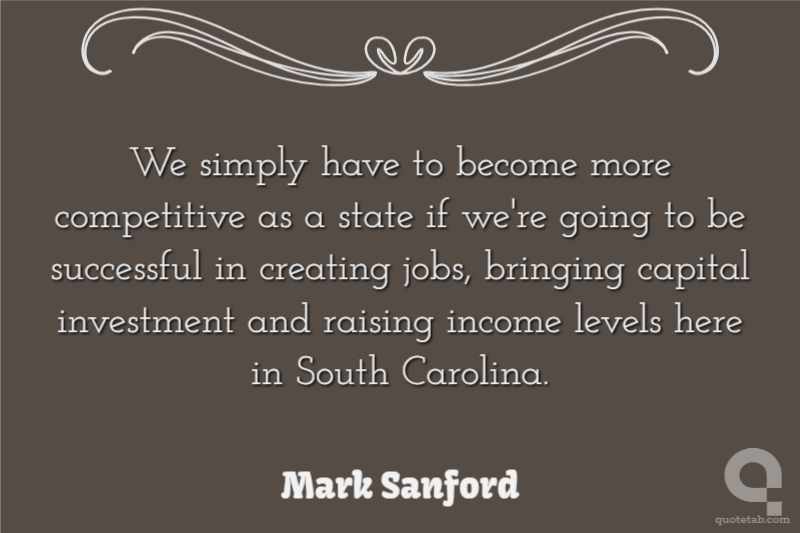 We simply have to become more competitive as a state if we're going to be successful in creating jobs, bringing capital investment and raising income levels here in South Carolina.
