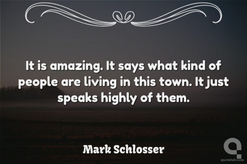 It is amazing. It says what kind of people are living in this town. It just speaks highly of them.