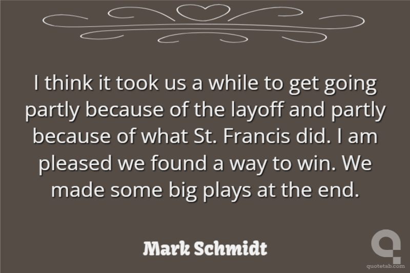 I think it took us a while to get going partly because of the layoff and partly because of what St. Francis did. I am pleased we found a way to win. We made some big plays at the end.