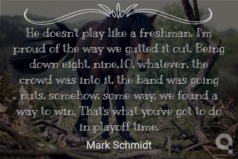 He doesn't play like a freshman. I'm proud of the way we gutted it out. Being down eight, nine,10, whatever, the crowd was into it, the band was going nuts, somehow, some way, we found a way to win. That's what you've got to do in playoff time.