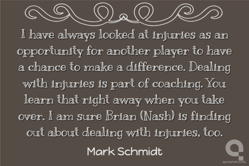 I have always looked at injuries as an opportunity for another player to have a chance to make a difference. Dealing with injuries is part of coaching. You learn that right away when you take over. I am sure Brian (Nash) is finding out about dealing with injuries, too.