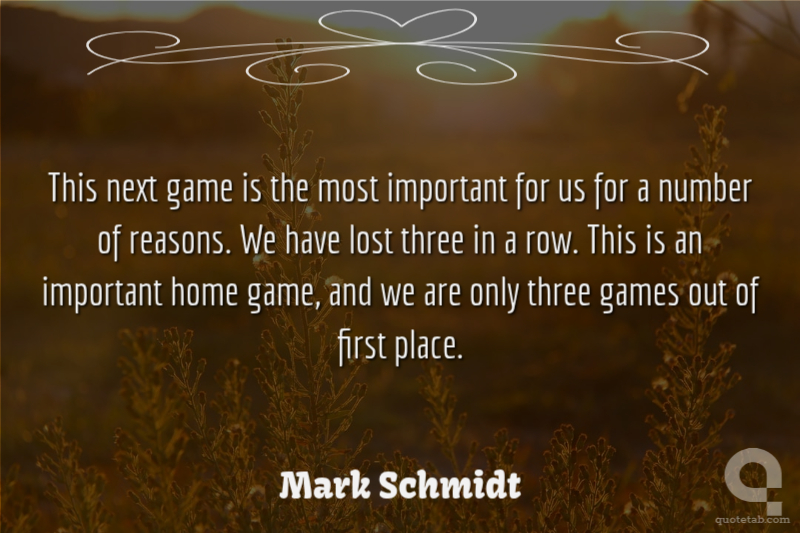 This next game is the most important for us for a number of reasons. We have lost three in a row. This is an important home game, and we are only three games out of first place.