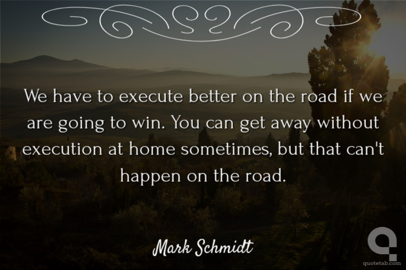 We have to execute better on the road if we are going to win. You can get away without execution at home sometimes, but that can't happen on the road.