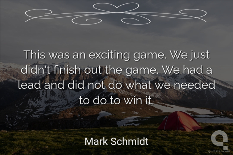 This was an exciting game. We just didn't finish out the game. We had a lead and did not do what we needed to do to win it.