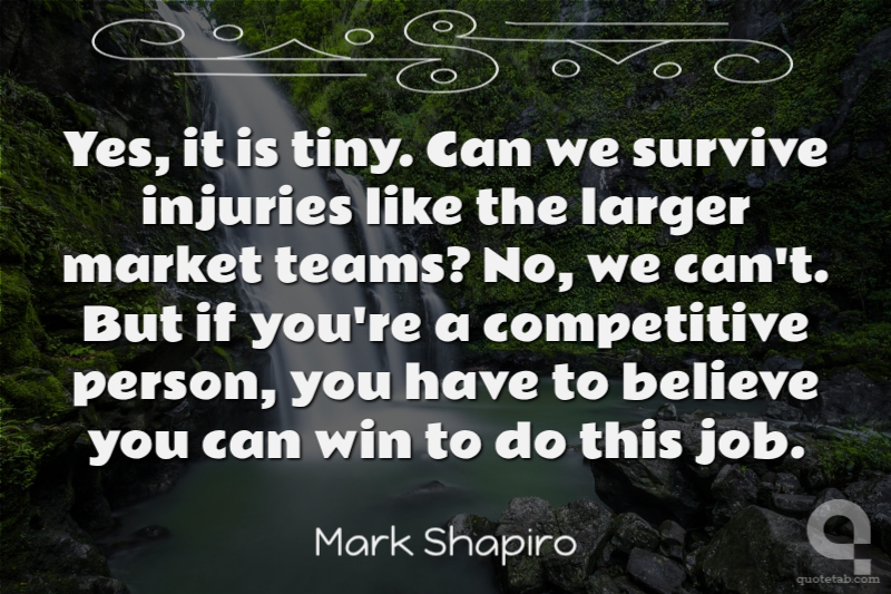 Yes, it is tiny. Can we survive injuries like the larger market teams? No, we can't. But if you're a competitive person, you have to believe you can win to do this job.