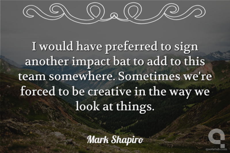 I would have preferred to sign another impact bat to add to this team somewhere. Sometimes we're forced to be creative in the way we look at things.