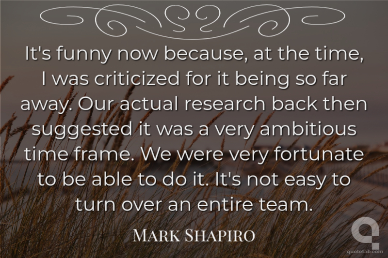 It's funny now because, at the time, I was criticized for it being so far away. Our actual research back then suggested it was a very ambitious time frame. We were very fortunate to be able to do it. It's not easy to turn over an entire team.