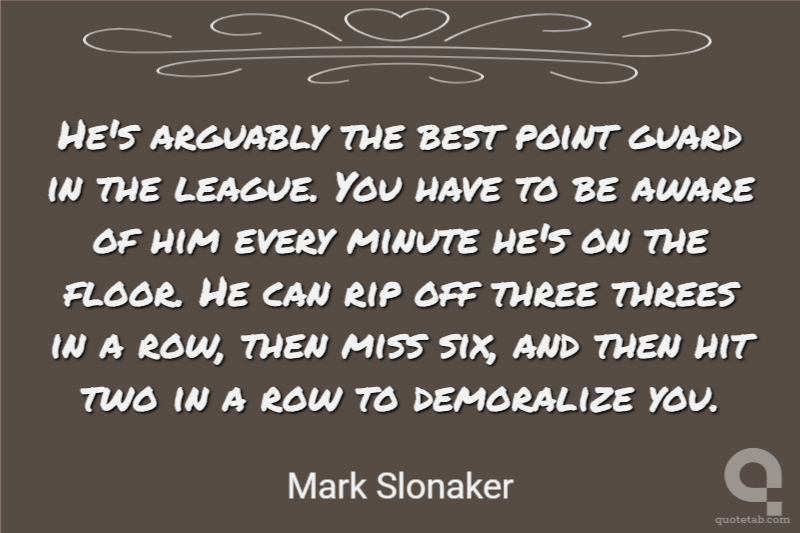 He's arguably the best point guard in the league. You have to be aware of him every minute he's on the floor. He can rip off three threes in a row, then miss six, and then hit two in a row to demoralize you.
