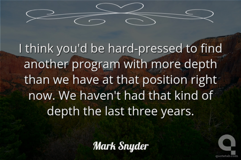 I think you'd be hard-pressed to find another program with more depth than we have at that position right now. We haven't had that kind of depth the last three years.