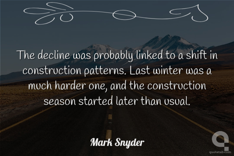 The decline was probably linked to a shift in construction patterns. Last winter was a much harder one, and the construction season started later than usual.