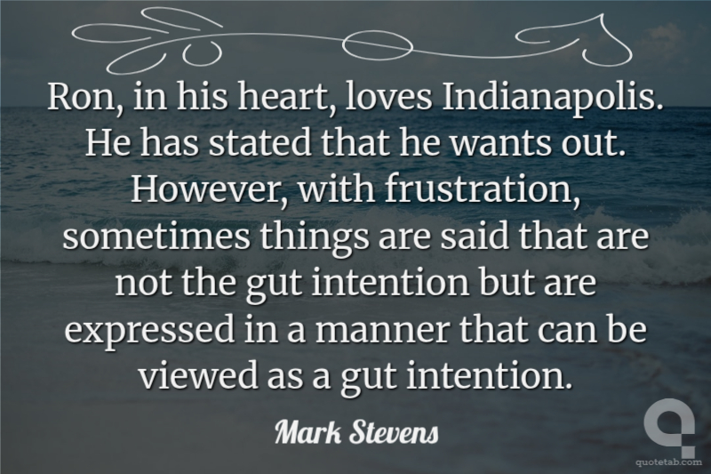 Ron, in his heart, loves Indianapolis. He has stated that he wants out. However, with frustration, sometimes things are said that are not the gut intention but are expressed in a manner that can be viewed as a gut intention.