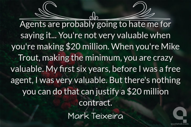 Agents are probably going to hate me for saying it... You're not very valuable when you're making $20 million. When you're Mike Trout, making the minimum, you are crazy valuable. My first six years, before I was a free agent, I was very valuable. But there's nothing you can do that can justify a $20 million contract.