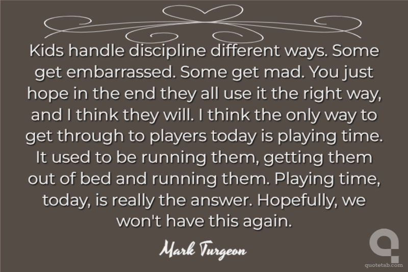 Kids handle discipline different ways. Some get embarrassed. Some get mad. You just hope in the end they all use it the right way, and I think they will. I think the only way to get through to players today is playing time. It used to be running them, getting them out of bed and running them. Playing time, today, is really the answer. Hopefully, we won't have this again.