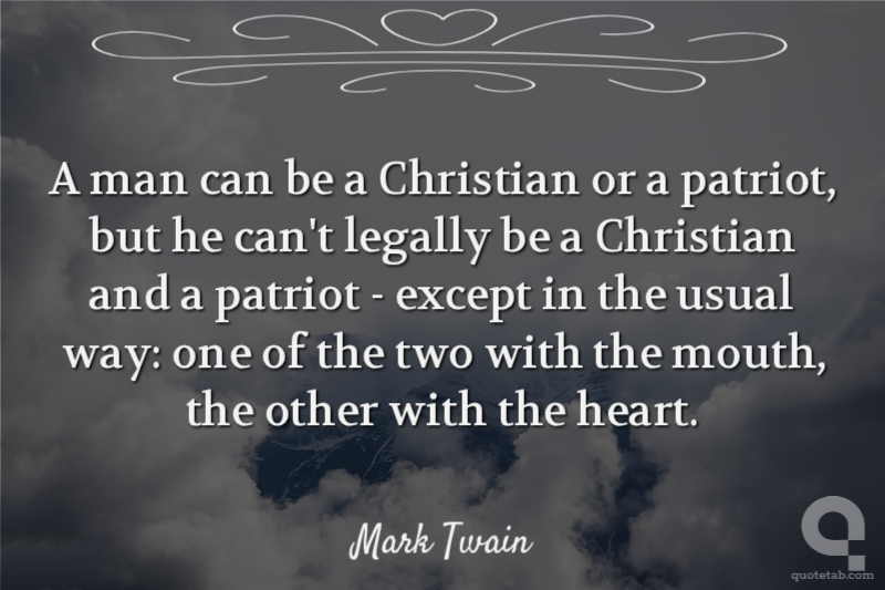 A man can be a Christian or a patriot, but he can't legally be a Christian and a patriot - except in the usual way: one of the two with the mouth, the other with the heart.