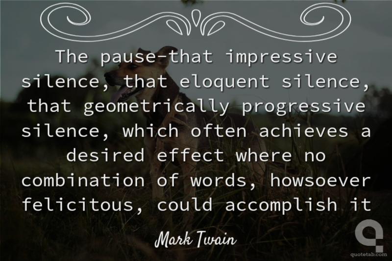 The pause-that impressive silence, that eloquent silence, that geometrically progressive silence, which often achieves a desired effect where no combination of words, howsoever felicitous, could accomplish it