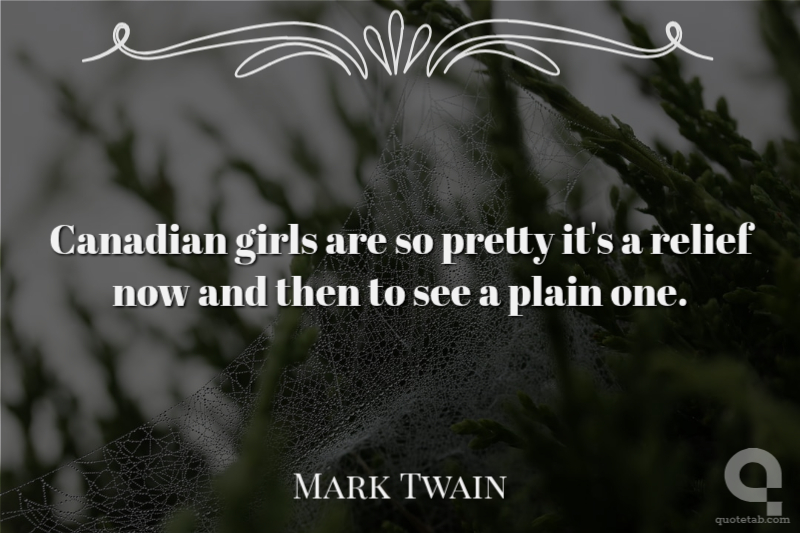 Canadian girls are so pretty it's a relief now and then to see a plain one.