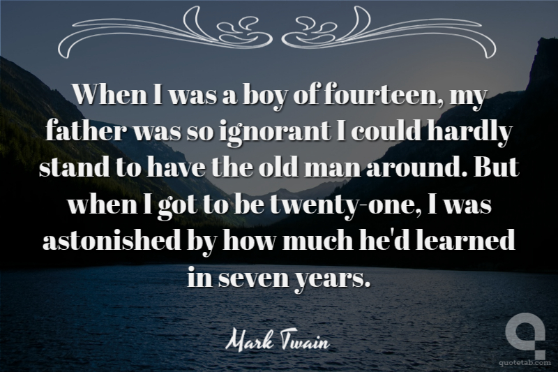 When I was a boy of fourteen, my father was so ignorant I could hardly stand to have the old man around. But when I got to be twenty-one, I was astonished by how much he'd learned in seven years.