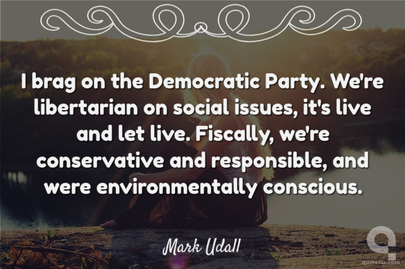 I brag on the Democratic Party. We're libertarian on social issues, it's live and let live. Fiscally, we're conservative and responsible, and were environmentally conscious.