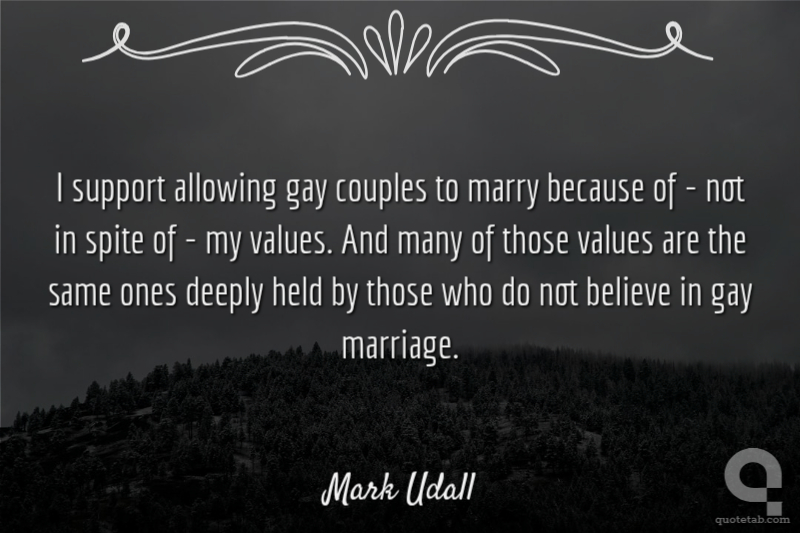 I support allowing gay couples to marry because of - not in spite of - my values. And many of those values are the same ones deeply held by those who do not believe in gay marriage.