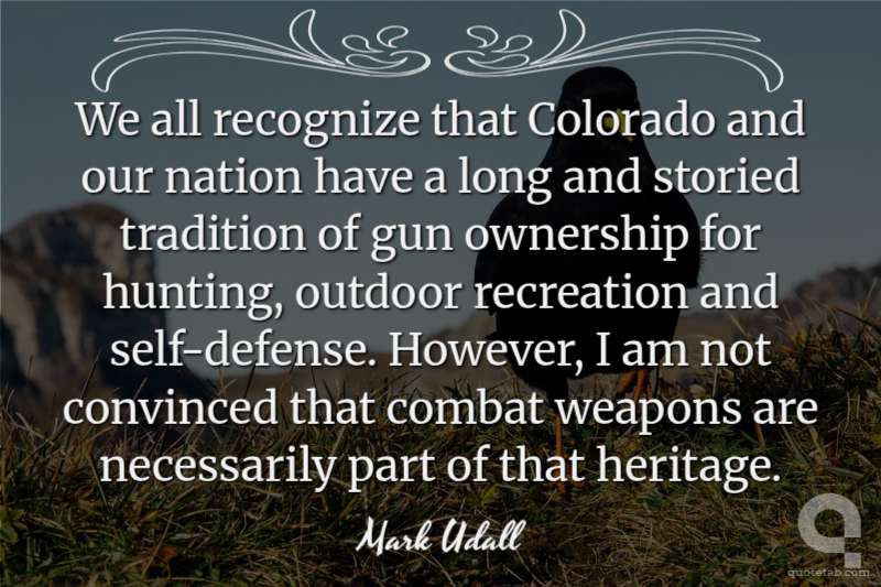 We all recognize that Colorado and our nation have a long and storied tradition of gun ownership for hunting, outdoor recreation and self-defense. However, I am not convinced that combat weapons are necessarily part of that heritage.