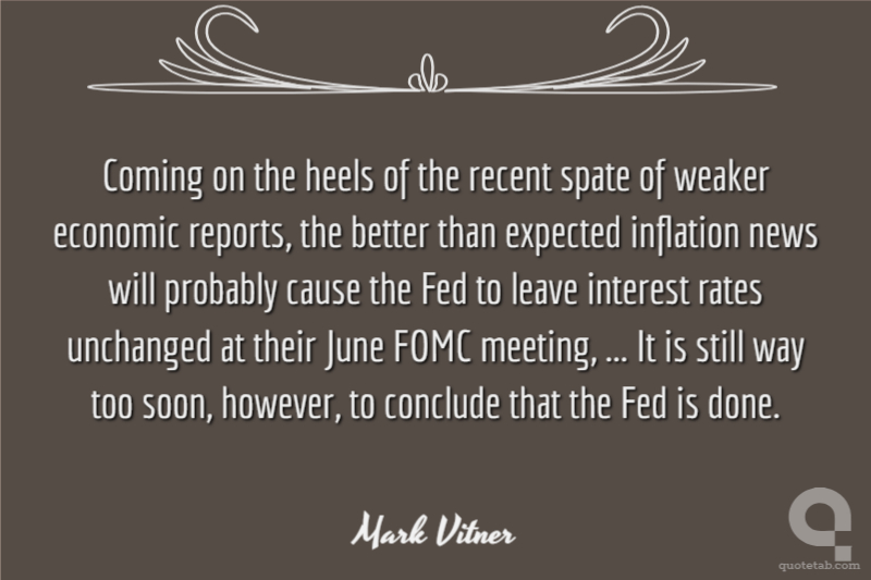 Coming on the heels of the recent spate of weaker economic reports, the better than expected inflation news will probably cause the Fed to leave interest rates unchanged at their June FOMC meeting, ... It is still way too soon, however, to conclude that the Fed is done.