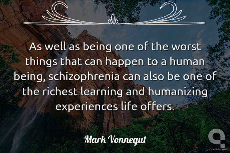 As well as being one of the worst things that can happen to a human being, schizophrenia can also be one of the richest learning and humanizing experiences life offers.