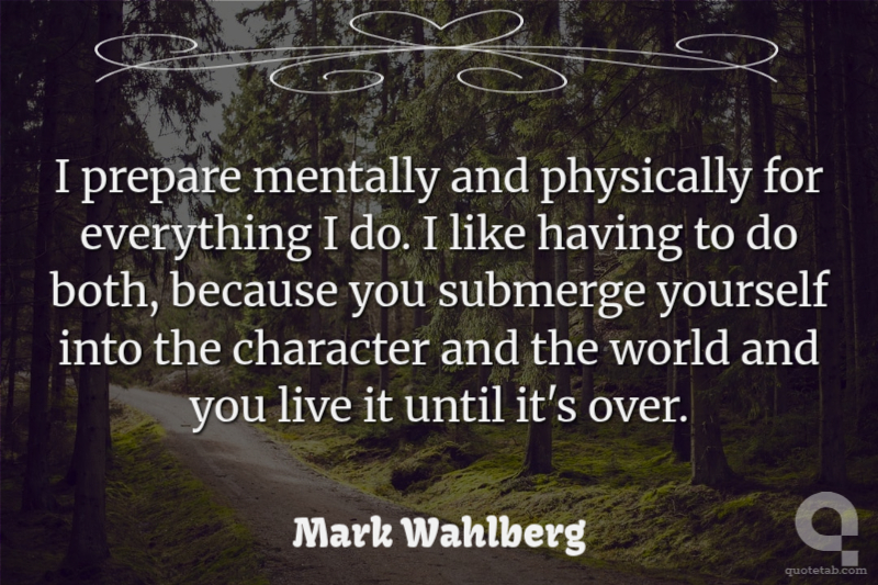 I prepare mentally and physically for everything I do. I like having to do both, because you submerge yourself into the character and the world and you live it until it's over.