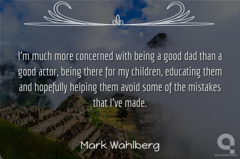 I'm much more concerned with being a good dad than a good actor, being there for my children, educating them and hopefully helping them avoid some of the mistakes that I've made.
