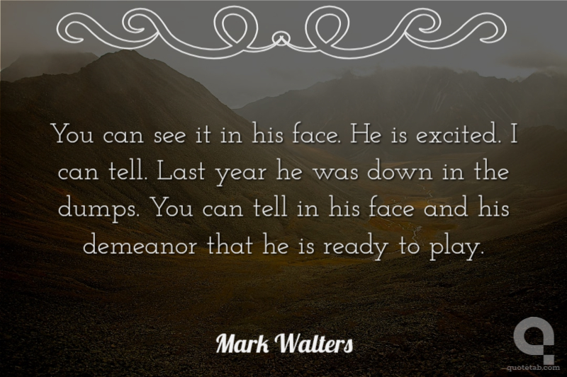 You can see it in his face. He is excited. I can tell. Last year he was down in the dumps. You can tell in his face and his demeanor that he is ready to play.