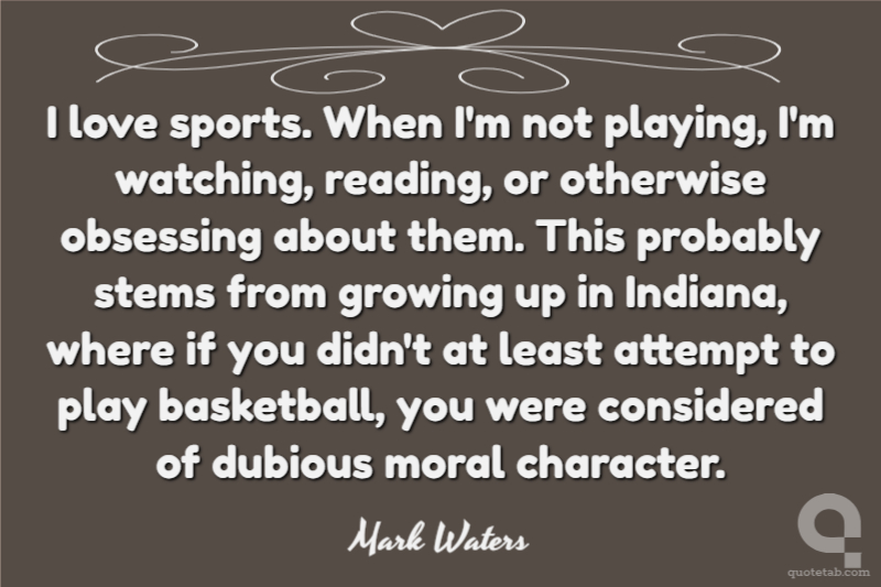 I love sports. When I'm not playing, I'm watching, reading, or otherwise obsessing about them. This probably stems from growing up in Indiana, where if you didn't at least attempt to play basketball, you were considered of dubious moral character.