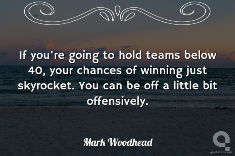 If you're going to hold teams below 40, your chances of winning just skyrocket. You can be off a little bit offensively.