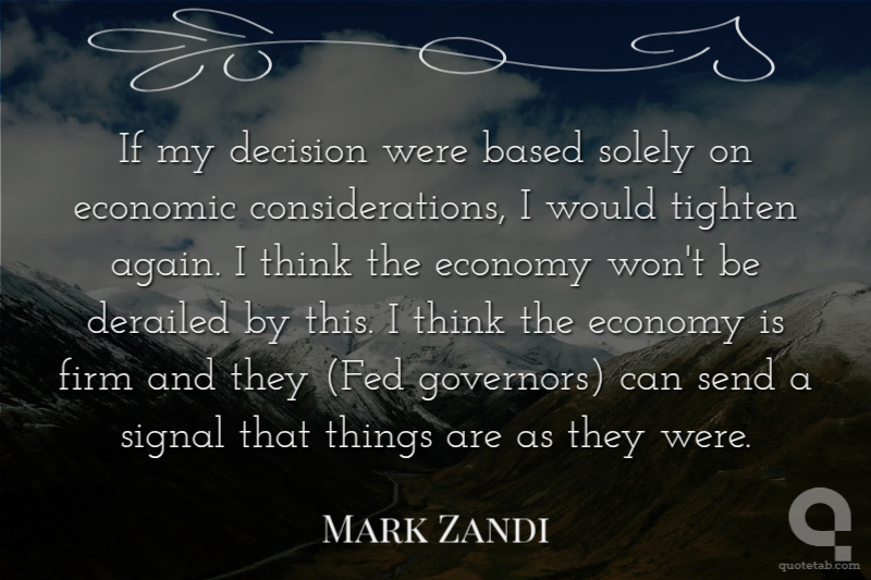 If my decision were based solely on economic considerations, I would tighten again. I think the economy won't be derailed by this. I think the economy is firm and they (Fed governors) can send a signal that things are as they were.