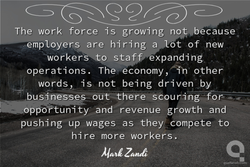 The work force is growing not because employers are hiring a lot of new workers to staff expanding operations. The economy, in other words, is not being driven by businesses out there scouring for opportunity and revenue growth and pushing up wages as they compete to hire more workers.