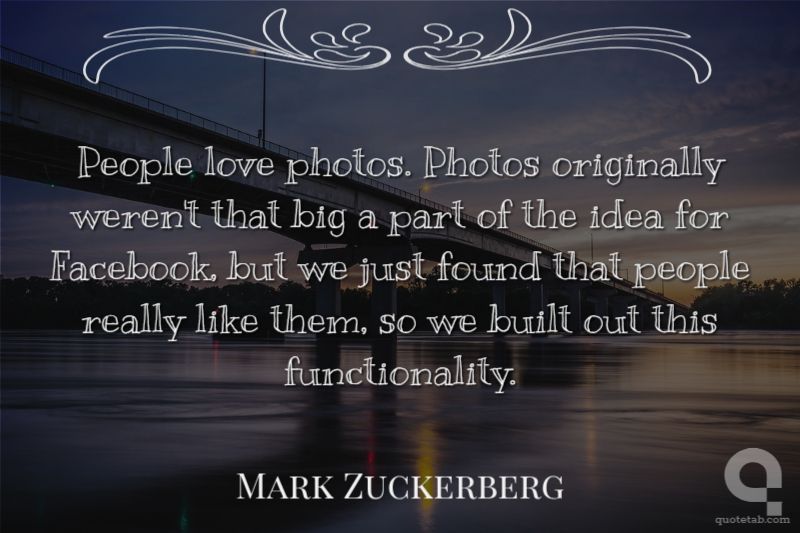 People love photos. Photos originally weren't that big a part of the idea for Facebook, but we just found that people really like them, so we built out this functionality.
