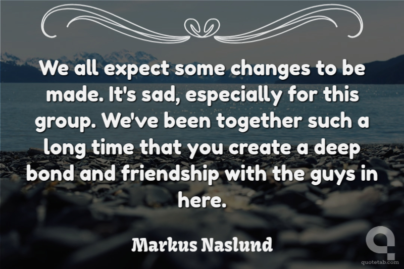 We all expect some changes to be made. It's sad, especially for this group. We've been together such a long time that you create a deep bond and friendship with the guys in here.