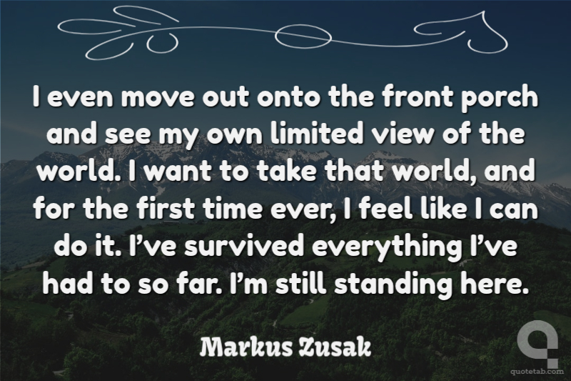 I even move out onto the front porch and see my own limited view of the world. I want to take that world, and for the first time ever, I feel like I can do it. I’ve survived everything I’ve had to so far. I’m still standing here.
