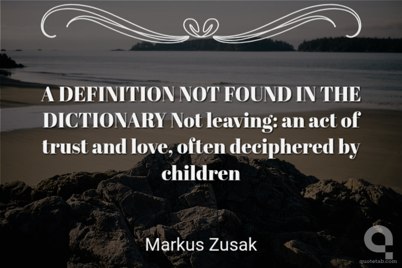 A DEFINITION NOT FOUND IN THE DICTIONARY Not leaving: an act of trust and love, often deciphered by children