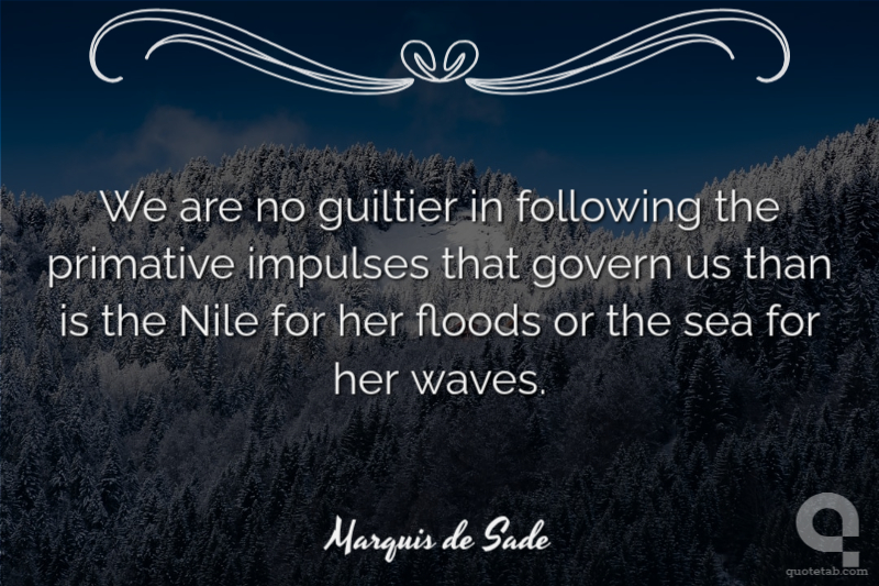 We are no guiltier in following the primative impulses that govern us than is the Nile for her floods or the sea for her waves.