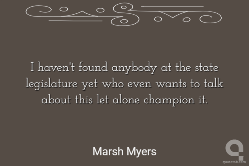 I haven't found anybody at the state legislature yet who even wants to talk about this let alone champion it.