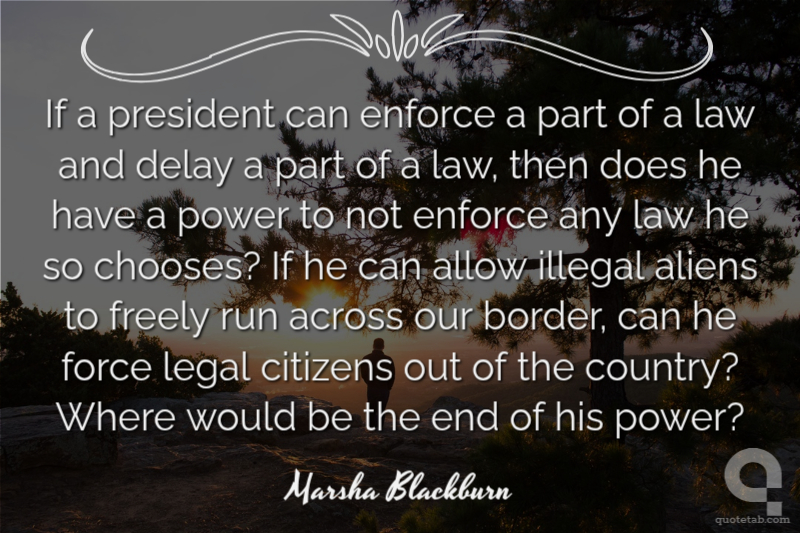 If a president can enforce a part of a law and delay a part of a law, then does he have a power to not enforce any law he so chooses? If he can allow illegal aliens to freely run across our border, can he force legal citizens out of the country? Where would be the end of his power?
