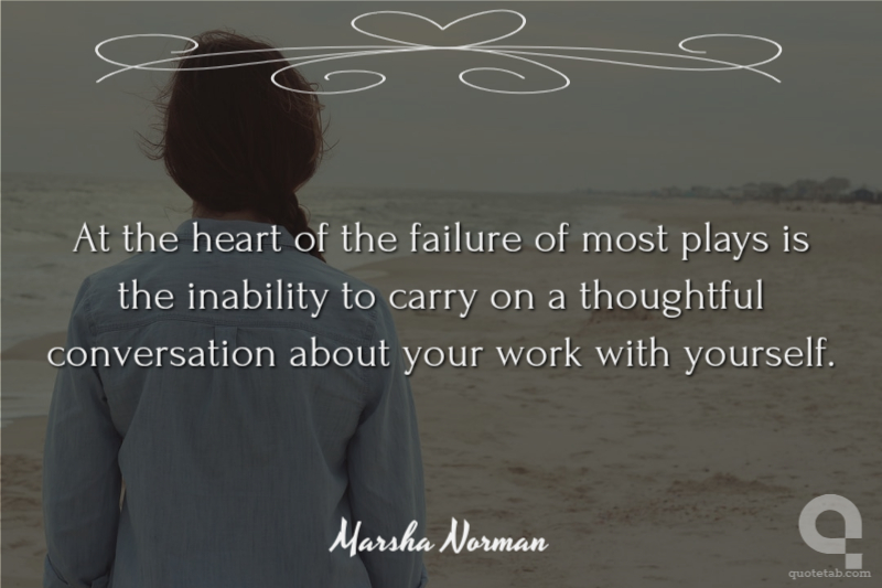 At the heart of the failure of most plays is the inability to carry on a thoughtful conversation about your work with yourself.