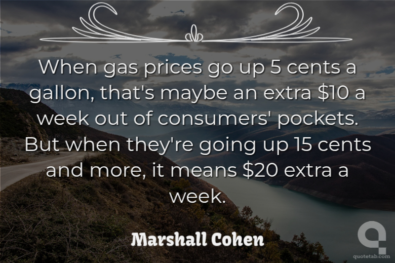 When gas prices go up 5 cents a gallon, that's maybe an extra $10 a week out of consumers' pockets. But when they're going up 15 cents and more, it means $20 extra a week.