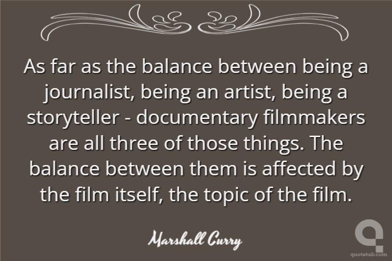 As far as the balance between being a journalist, being an artist, being a storyteller - documentary filmmakers are all three of those things. The balance between them is affected by the film itself, the topic of the film.