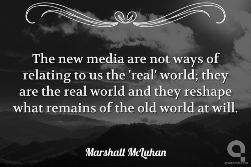 The new media are not ways of relating to us the 'real' world; they are the real world and they reshape what remains of the old world at will.
