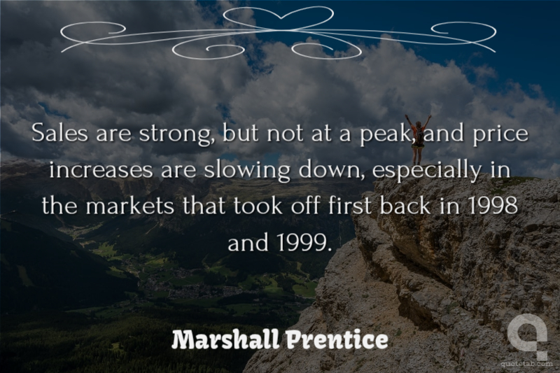 Sales are strong, but not at a peak, and price increases are slowing down, especially in the markets that took off first back in 1998 and 1999.