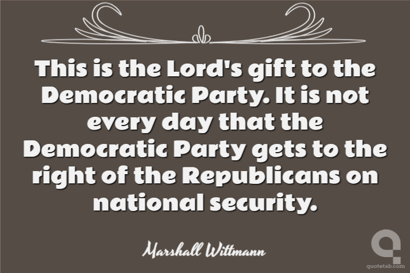 This is the Lord's gift to the Democratic Party. It is not every day that the Democratic Party gets to the right of the Republicans on national security.