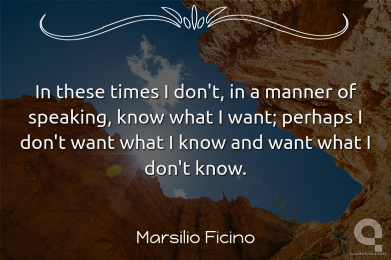 In these times I don't, in a manner of speaking, know what I want; perhaps I don't want what I know and want what I don't know.