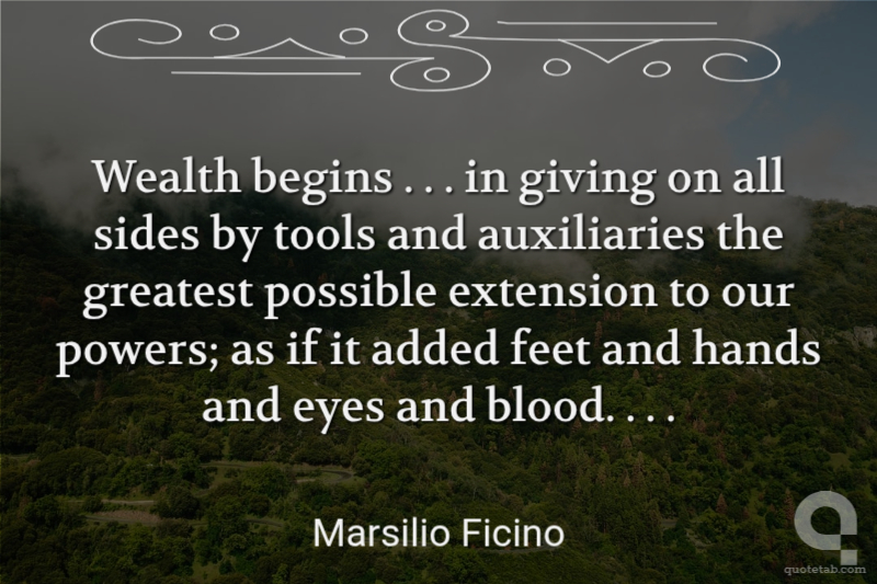 Wealth begins . . . in giving on all sides by tools and auxiliaries the greatest possible extension to our powers; as if it added feet and hands and eyes and blood. . . .