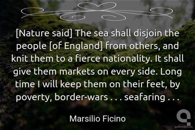 [Nature said] The sea shall disjoin the people [of England] from others, and knit them to a fierce nationality. It shall give them markets on every side. Long time I will keep them on their feet, by poverty, border-wars . . . seafaring . . .