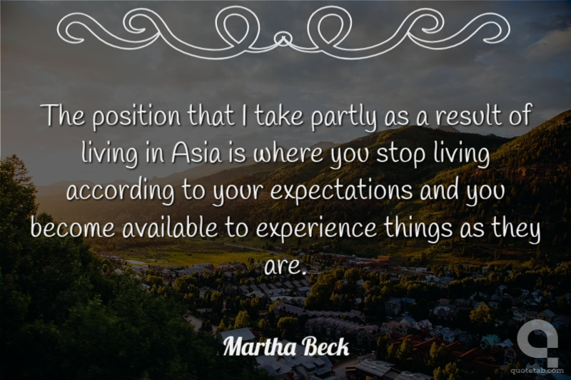 The position that I take partly as a result of living in Asia is where you stop living according to your expectations and you become available to experience things as they are.